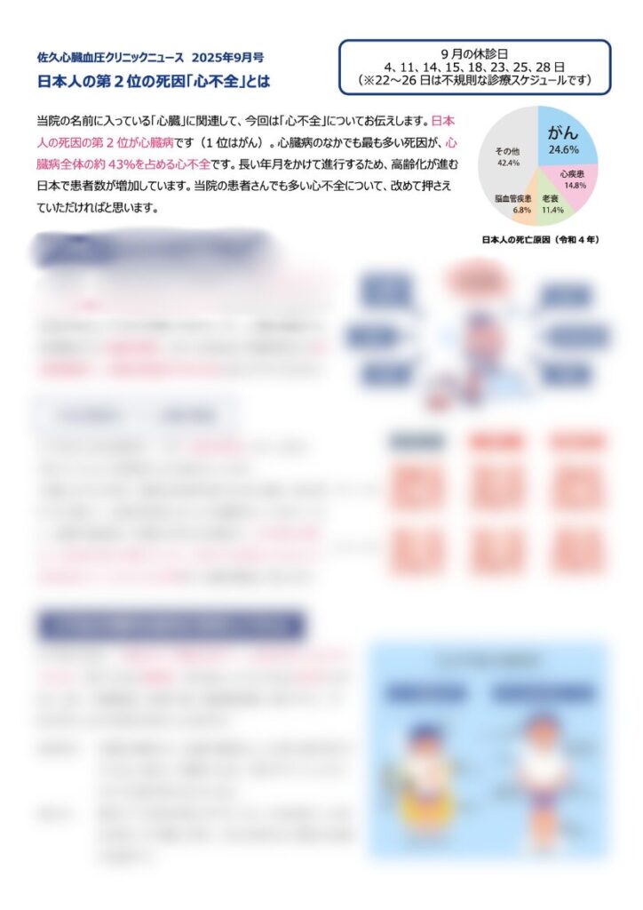 今月のクリニックニュース「⽇本⼈の第2位の死因「⼼不全」とは」