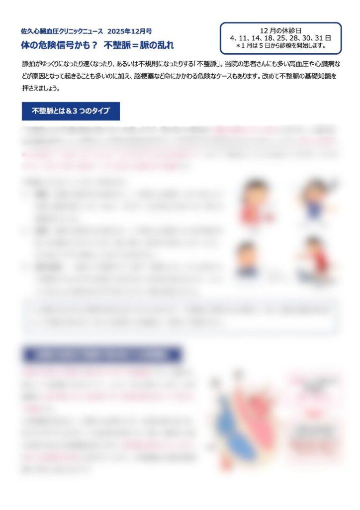 今月のクリニックニュース「体の危険信号かも︖ 不整脈=脈の乱れ」
