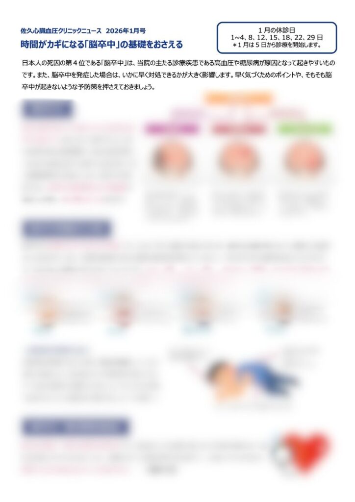 1月のクリニックニュース「時間がカギになる『脳卒中』の基礎をおさえる」