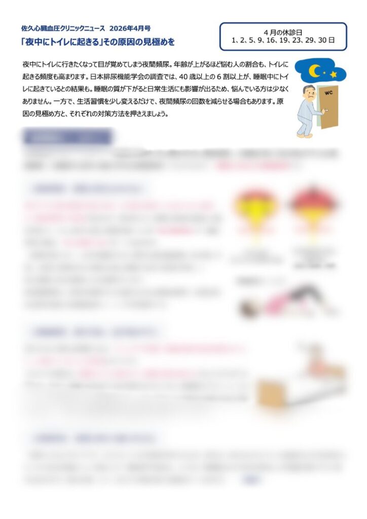 4月のクリニックニュース「『夜中にトイレに起きる』その原因の⾒極めを」