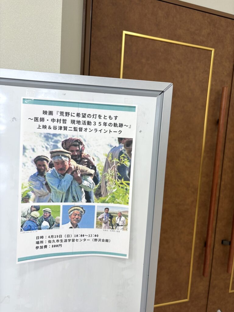 4月19日に映画『荒野に希望の灯をともす』上映イベントを開催しました。同作は、アフガニスタンとパキスタンで35年にわたり、病や戦乱、そして貧困や干ばつに苦しむ人々に寄り添いながら命を救い、生きる手助けをしてきた中村哲医師のドキュメンタリーです。